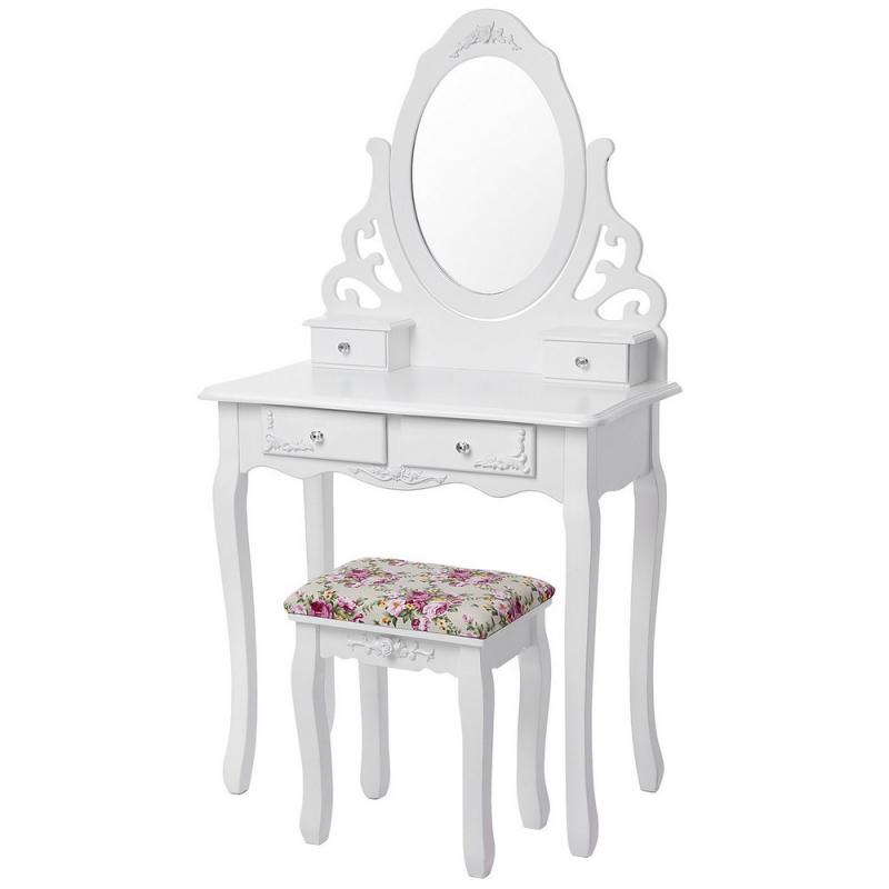 Elegantna toaletna mizica Frida Kahlo je idealna za vsa dekleta, ženske in romantične duše, ki jo bodo oboževale ne samo zaradi njenih oblik, ampak tudi zaradi njene praktičnosti. Čisto belo obliko dopolnjujejo štirje praktični predali, kjer lahko shranite vaše dragocenosti ali ličila. Vključuje tudi ogledalo v obliki srca ter tabure za udobno ličenje • Toaletna mizica s 4 predali, ogledalom in belim taburejem • mere mizice: 75 x 40 x 139 cm • barva: bela