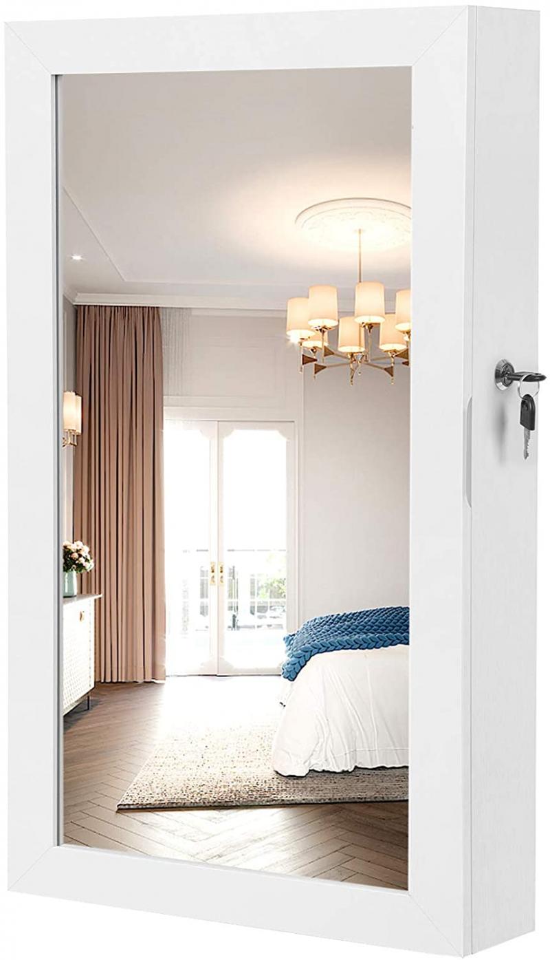 Vaši najljubši modni dodatki in lepotilne potrebščine si zaslužijo popolno mesto v vašem domu. Priskrbite jim ga v modernem zrcalu z vložnim prostorom, ki ga preprosto obesite na vrata kopalnice ali steno v spalnici. Je elegantne bele barve, vam pa bo v užitek pri lepotičenju in urejanju za vsako priložnosti. • Belo viseče zrcalo, ki ga lahko obesite na vrata ali steno • 67 x 37 x 10,5 cm