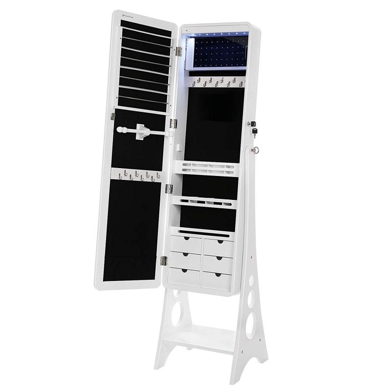 Lahko ga namestite poleg postelje, toaletne mizice ali na hodniku. Čudovito bo! Dizajnersko oblikovano belo ogledalo bo okrasilo katero koli žensko sobo. Ima kompleksen skriti sistem polic in predalov za shranjevanje kozmetike in nakita, zato tudi prihrani prostor. Prav tako ne manjka osvetlitve in polic, na primer za torbice. • Belo zrcalo - 38 x 156 x 40 cm