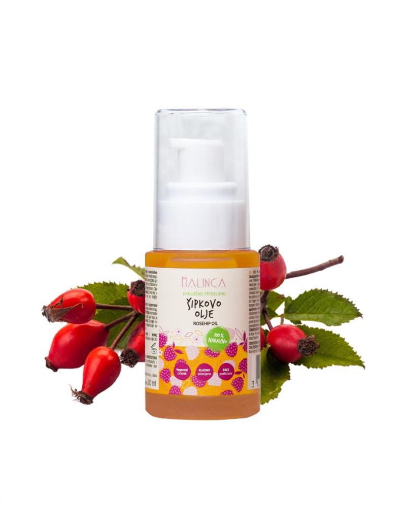 Šipkovo olje je 100 % naravno. hladno stisnjeno olje iz semen ekološko pridelanih šipkovih sadežev. V kožo se hitro vpije in ne pušča mastnega občutka. hvaležni pa so mu vsi tipi kože. Šipkovo olje je nepogrešljiva naravna nega. ki navdušuje. Izdelek je prejemnik certifikata CosmEthically ACTIVE.