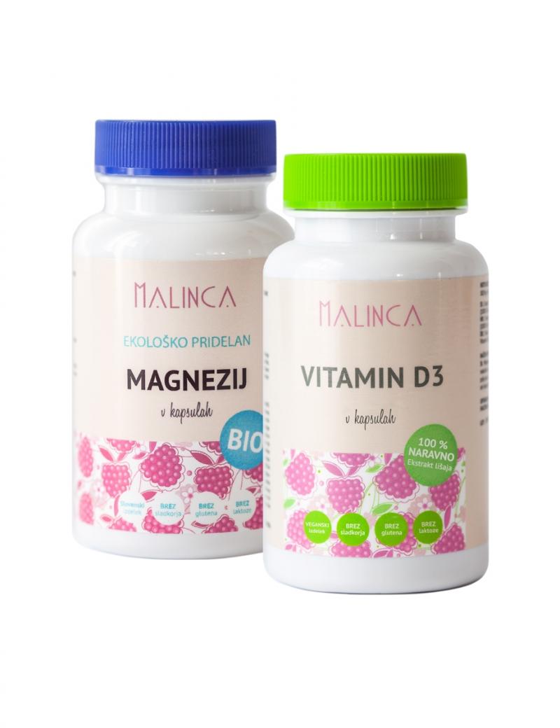 Paket vsebuje dve nepogrešljivi hranili za vse. ki želijo poskrbeti za svoje kosti. To sta vitamin D3. ki prispeva k normalni absorpciji kalcija in fosforja ter k zdravju kosti. zob in mišic. in magnezij. ki tudi prispeva k ohranjanju zdravih kosti. zob in mišic.