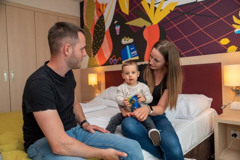 Standardna dvoposteljna soba: Do prenovljenih sob vodi interaktivni hodnik z dogodivščinami, kjer prijetne barve, moderno pohištvo in edinstveni detajli zagotavljajo relaksacijo in domače udobje. Sobe s površino 24 m2 so idealne za relaksacijo parov in družin z enim otrokom, odlična pa so tudi za enega starša in njegovega/njenega otroka/otroke.