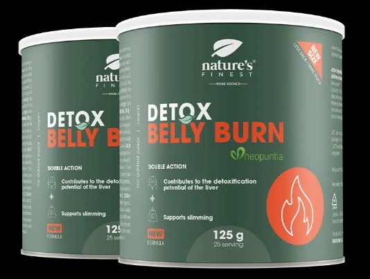 Detox Belly Burn 1+1 je dnevna pijača za razstrupljanje, osredotočena na predel trebuha, zasnovana za podporo naravnim procesom čiščenja, udobju prebave in splošnemu ravnovesju presnove. Združuje patentiran Neopuntia™ iz opuncije, pegasti badelj, izvleček artičoke in klorelo za naravno podporo telesnim razstrupljevalnim rutinam ter za pomoč pri občutku lažjosti in ravnovesja.Neopuntia™ je rastlinski kompleks iz opuncije, ki pomaga telesu pri presnavljanju hranil iz hrane. Pegasti badelj je tradicionalno povezan z dobrobitjo jeter in naravnimi razstrupljevalnimi funkcijami, medtem ko je izvleček artičoke znan po podpori udobni prebavi in razgradnji prehranskih maščob.Klorela je zelena superhrana, ki podpira naravne procese čiščenja v telesu ter prispeva k ravnovesju prebave in splošni vitalnosti.Z osvežilnim naravnim okusom pomaranče je Detox Belly Burn 1+1 enostaven za vsakodnevno uživanje. Primeren je za posameznike, ki želijo podpreti udobje v predelu trebuha, razstrupljevalne rutine, zdravje jeter, prebavo in uravnoteženo presnovo kot del zdravega načina življenja.