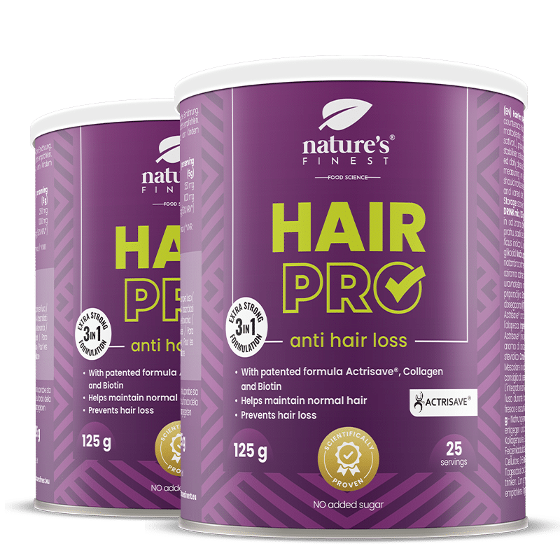 Hair Pro FOR MEN je močan napitek za krepitev moških las, zasnovan za podporo gostejšim, polnejšim in močnejšim lasem od znotraj navzven. Ta enkratni dnevni pripravek združuje patentiran Actrisave™, kolagenski prašek in biotin, da ciljno naslovi ključne dejavnike oslabelih, redčejših in obremenjenih las pri moških.Actrisave™ pomaga podpirati moč lasnih mešičkov in mikrookolje lasišča, spodbuja bolj odporna lasna vlakna ter pomaga zmanjševati pretirano izpadanje in lomljenje las ob dosledni uporabi. Posebej primeren je za moške, ki opazijo umik linije las, zmanjšano gostoto las ali oslabljen vrh glave.Kakovosten kolagen zagotavlja strukturne beljakovine, ki podpirajo lasno deblo, kar prispeva k izboljšanju debeline, elastičnosti, gostote las in bolj robustnemu videzu las. Biotin je ključni vitamin za lepoto las, ki prispeva k vzdrževanju zdravih las, podpira sijaj, volumen, vitalnost in bolj mladosten, urejen videz.S osvežilnim okusom ananasa in praškom, ki se zlahka raztopi, se Hair Pro FOR MEN brez težav vključi v dnevno nego. Idealen je za moške, ki želijo ciljno podporo za moč las, volumen, vitalnost lasišča, zaupanje v pričesko in dolgoročno zdravje las kot del proaktivnega življenjskega sloga samonege.