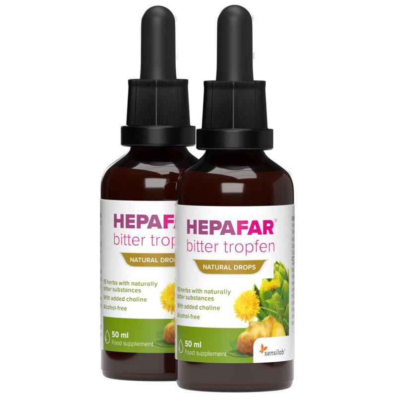 Hepafar Bitter Tropfen 50ml, 15 zelišč, zeliščne grenčice v kapljicah za prebavo 2x