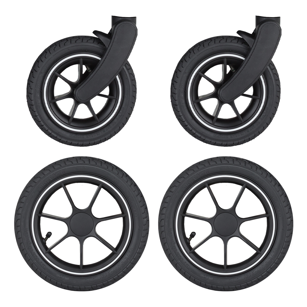 Napihljiva kolesa za voziček Street2 vam bodo pomagala, da se boste lahko brezskrbno spopadli z neravnim pločnikom v mestu, pa tudi s potmi na podeželju. Komplet vključuje 4 kolesa: 2 sprednji in 2 zadnji kolesi.Dimenzije:- premer zadnjega kolesa: 29 cm- premer sprednjega kolesa: 20 cmKolesa so združljiva tudi s prejšnjo različico modela Street+.**Naslov dobavitelja:** ags 92, s.r.o., Drahobejlova 2515/18, 190 00 Praga, Češka republikainfo@petiteetmars.com