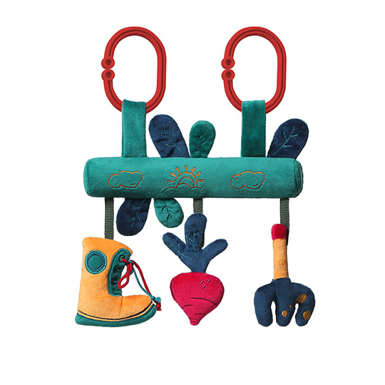 Izobraževalna igrača bo otroku predstavila raznolik svet barv, zvokov in oblik. Oblika igrače v obliki trapeza omogoča obešanje na vse vrste avtomobilskih sedežev ali vozičkov. Zaradi tega lahko otroka spremlja na potovanjih in sprehodih.Lastnosti:Zbirka igrač Play More- namen zbirke Play More je spodbuditi otroško radovednost in jih spodbuditi k igri. Otroku omogoča pridobivanje novih spretnosti ter ga spodbuja k čutnim in intelektualnim dejavnostim.Še vedno skupaj- zaradi oblike trapeza ga je mogoče pritrditi na avtomobilski sedež, voziček ali otroško posteljico.Dolge vezalke- dolge vrvice v obliki testenin spodbujajo otrokov čut za dotik, hkrati pa omogočajo učenje zavezovanja in razvezovanja vozlov.Zvočna stimulacija- igrača vsebuje elemente, ki povzročajo zvok ropotanja, škripanja ali šušljanja. Hropenje ima na otroka pomirjujoč učinek. Žvižganje vzbuja zanimanje in prikazuje vzročno-posledične povezave. Šumenje pritegne otrokovo pozornost.100 % poliesterPrimerno za otroke od 0m+Dimenzije 22 cm x 28 cm x 4 cmIgračo pritrdite tako, da bo otroku nedosegljiva. Da bi preprečili morebitne poškodbe zaradi zapletanja, odstranite igračo takoj, ko se otrok začne dvigovati na rokah in kolenih v položaj za plezanje.Z igrače odstranite vse varnostne elemente, ki bi lahko bili nevarni za otroka.Preverite kakovost igrače, preden jo daste otroku. Le nepoškodovana igrača zagotavlja varno uporabo za vašega otroka. Igračo zavrzite takoj, ko opazite prve znake poškodb.Igranje je priporočljivo pod nadzorom odraslih.Igrača ustreza standardu EN 71.Priporočamo, da embalažo shranite za primerjavo. Embalažo hranite zunaj dosega otrok. Embalaža in pritrdilni elementi niso igrača in lahko predstavljajo nevarnost za zdravje otroka.Naslov dobavitelja: Babyono sp. z o.o., Kowalewicka 13, 60-002 Poznań, Poljska. +48 61 83 90 520, info@babyono.pl, www.babyono.com