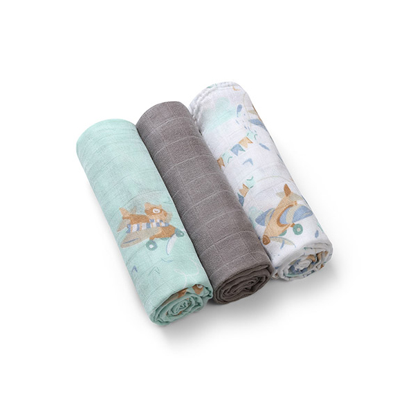 BABYONO Bambusove plenice 3 kom modro-sive, 70x70 cm