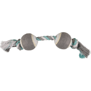 Lastnosti:Zabavna igra z žvečilno vrvjo za pse, z dvema teničnima žogama.Razpoložljive barve: meta, roza