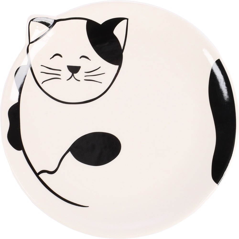 Keramična posoda za hranjenje in pitje z mačjim vzorcem za mačke. Lastnosti: - Material: keramika - Lahko se čisti v pomivalnem stroju - 13,5 x 13 x 2 cm - 80 ml